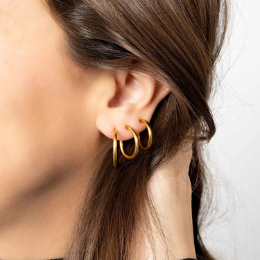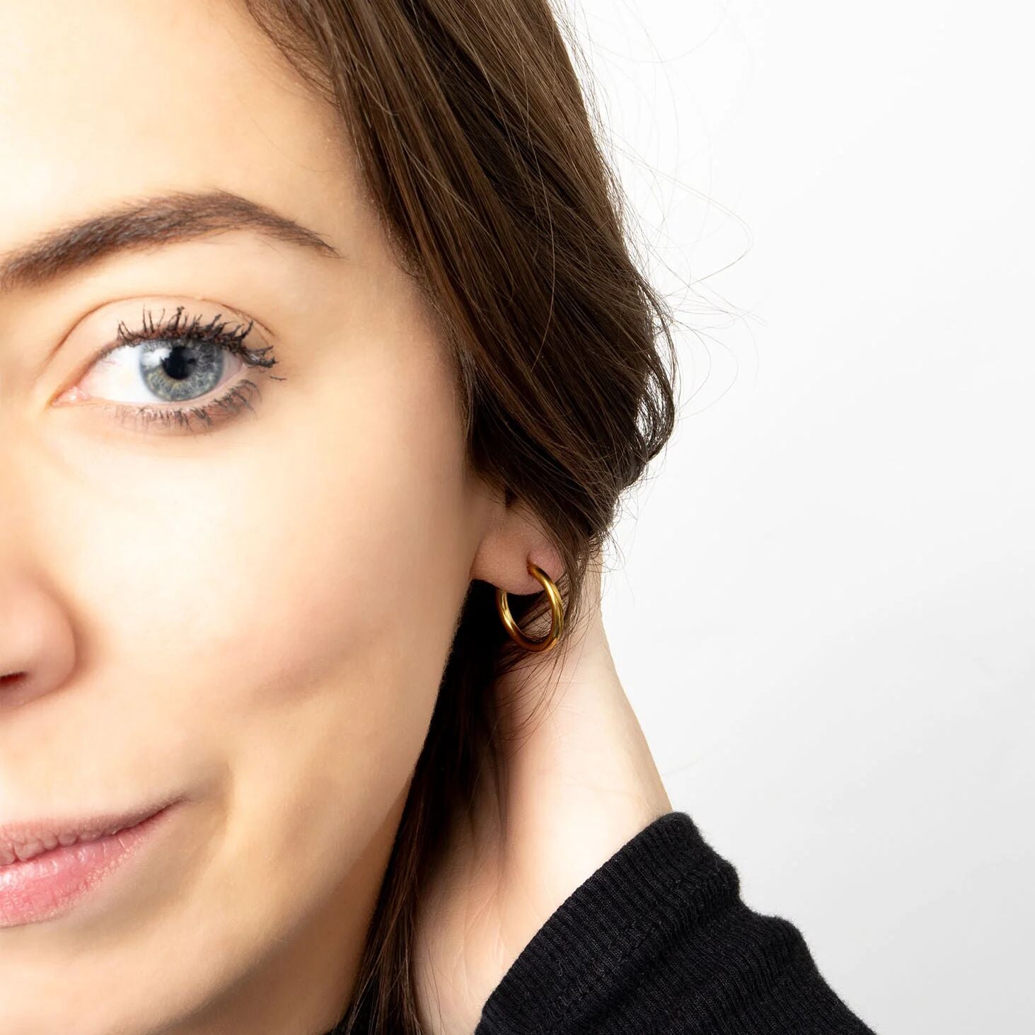 The Sliding Spring Hoop Earrings are great as a stand alone seller, but are the perfect option to be paired with other huggies or stud earrings for a stacked look. Explore our complete Earring Collection to start building your own assortment of stacked earring looks!