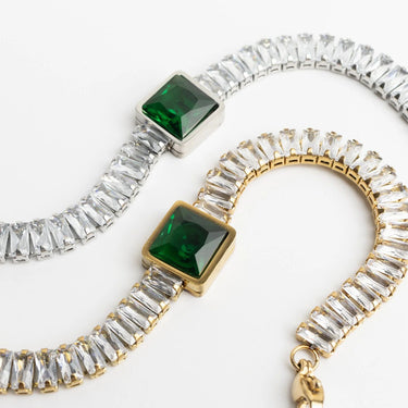 18K Gold PVD Stainless Steel Square Stone Emerald Tennis Chain Bracelet / BRJ1138