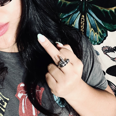 The Wholesale Stainless Steel Polished Middle Finger Ring is made with a proprietary blend of 316L Surgical Steel.
