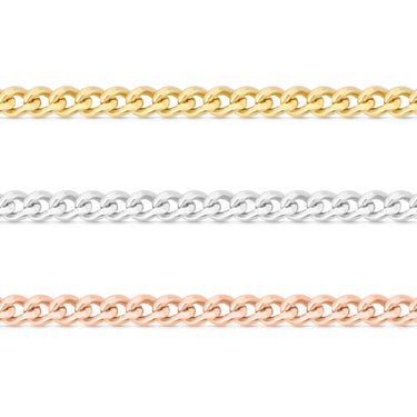 The Diamond Cut Curb Chain is a Permanent Jewelry Chain that offers a lightweight and breathable look that can stand on its own, but is also often used for charm looks. Our Diamond Cut Curb Chain is great for fine accent looks and is 0.35 x 1.2mm thick and is available in 14K Solid Gold, 14K Solid Rose Gold, and .925 Sterling Silver. This item is sold by the foot.