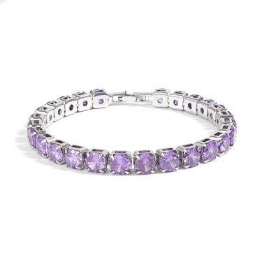 The Wholesale White 18K Gold PVD Coated Over Brass Purple CZ Fashion Bracelet jewelry is made with Brass and consists of copper and zinc. The Brass is dipped in pure 18K white gold making it the perfect long lasting piece of jewelry at an affordable price.