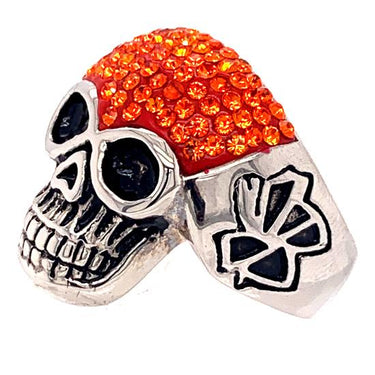 Schädel mit winzigen orange CZ -Akzenten Edelstahlring/SCR3108