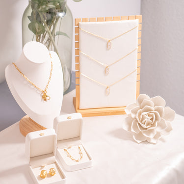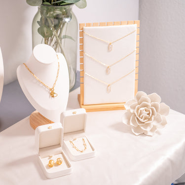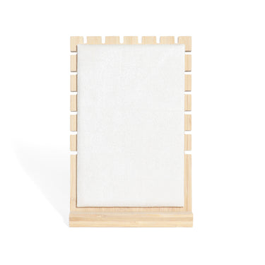Use this display in your jewelry case, counter tops, festival and fair pop ups or just to keep your jewelry safe and organized. We chose a neutral solid wood border to highlight all varieties of jewelry, paired with the cream colored suede adds a very high-end look and feel to your jewelry displays. This will ensure you can get a great return on your displayed jewelry.