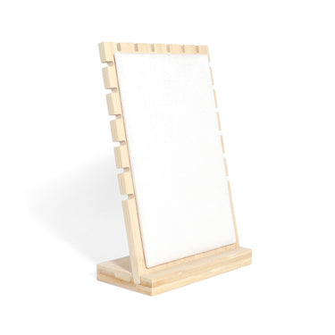 This beautiful Wood and Soft Cream Colored Suede 10-12 Unit Necklace Jewelry Display was designed to be versatile over a wide variety of jewelry display uses.
