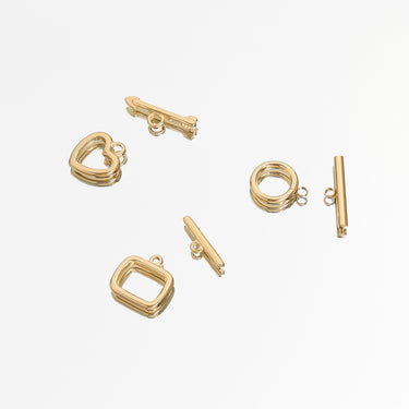 The sleek and sentimental 18K Gold PVD Stainless Steel Heart & Arrow Toggle Clasps is perfect for a variety of jewelry-making projects. It is strong and secure, making it ideal for necklaces and bracelets. Simply connect the bar to one end and the loop to the other. The bar goes through the loop creating a strong connection that will hold your jewelry in place all day long. Made with our proprietary blend of 18K Gold PVD coated surgical-grade stainless steel designed for everyday wear, your customers have quality, style, and comfort that last.