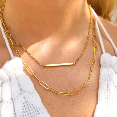 Our NEW Paperclip Layered Blank Bar Necklace is the perfect layered necklace to give your paperclip jewelry collection added dimension!
