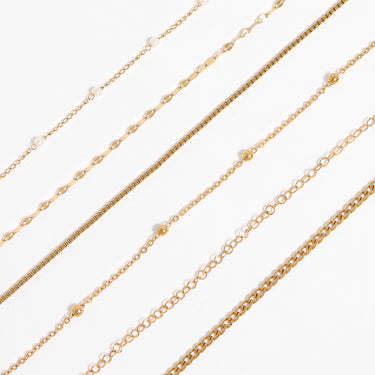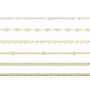 Chain Styles Included: 3 mm Satellite Chain, 3 mm Circle Cable Chain, Box Chain, Pearl Chain, Curb Chain, Lip Chain