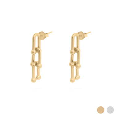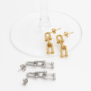 Sleek and architectural, the 18K Gold PVD Stainless Steel Thin U-Lock Chain Earrings offer minimalist polish with a modern edge. Crafted from premium stainless steel and finished in radiant 18K gold PVD, these earrings deliver long-lasting, tarnish-resistant shine designed for everyday wear. The slim U-lock chain silhouette introduces subtle industrial influence while maintaining a clean, refined profile that transitions effortlessly from daytime styling to evening sophistication. Lightweight and thoughtfully constructed, this pair blends durability with understated elegance.