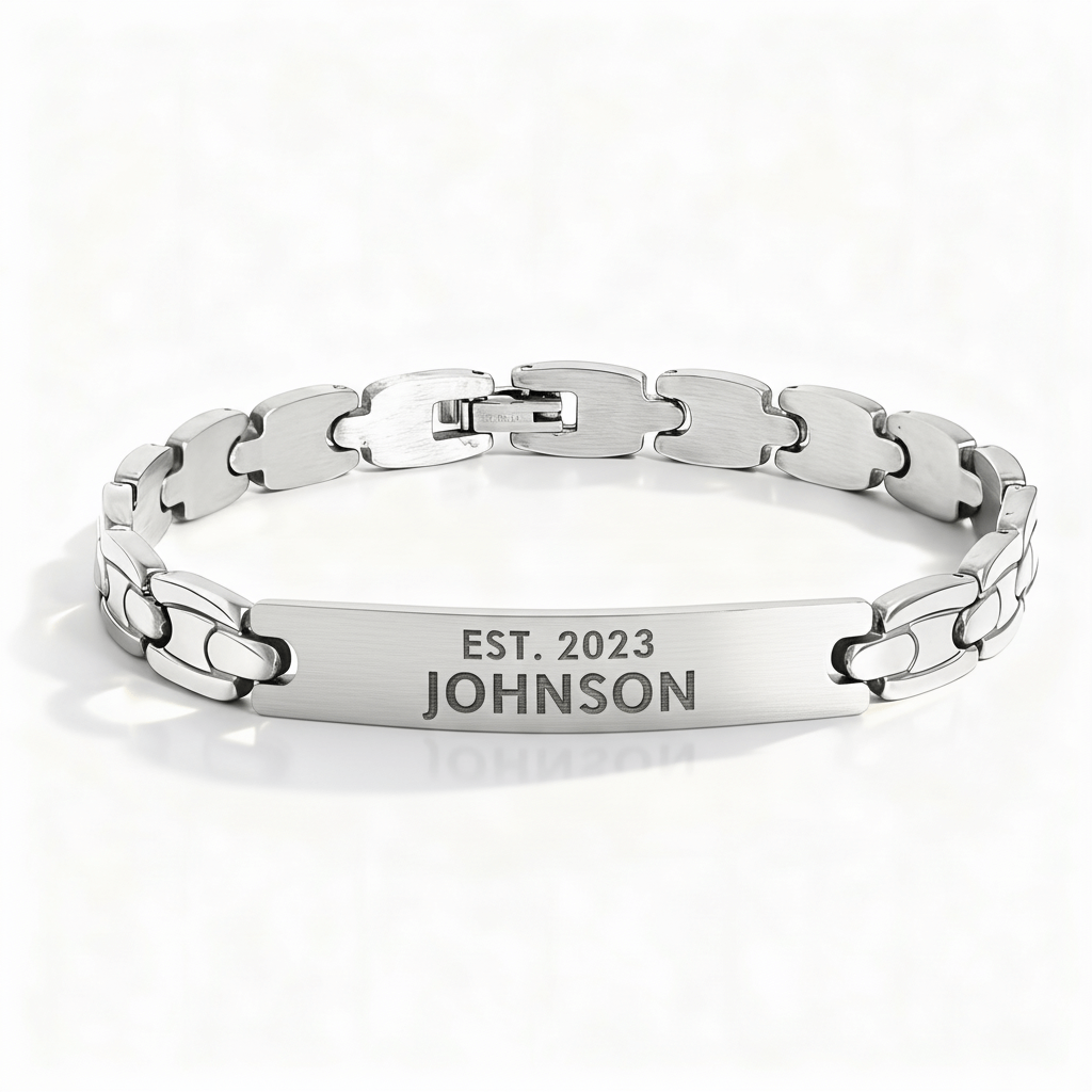 Perfect for customization, our Stainless Steel Men's Blank Bracelet offers a sleek, minimalist design that's built to last. This simple and lightweight bracelet features a blank bar center piece with a snap lock clasp so you can enjoy a secure fit and comfortable wear. The blank bar offers the perfect canvas that can be personalized with your own custom-engraved message to create a piece unique to you. Durable, stylish, and ready for customization, it's a must-have for any collection.
