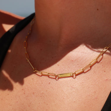 18K Gold PVD Stainless Steel Engravable Paperclip 2 Bar Necklaces are strong, durable, and don't easily break.