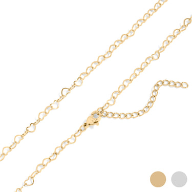 Fall in love with the perfect everyday statement. This necklace features sleek, polished heart-shaped links in 18K Gold PVD over durable stainless steel—combining long-lasting shine with romantic charm. Whether layered or worn solo, it adds a bold yet feminine touch to any look