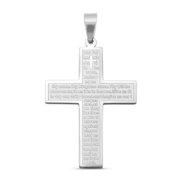 Large Padre Nuestro English Lord's Prayer Stainless Steel Cross Pendant / PDL9002