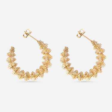 Our Wired Statement Hoop Earrings are bursting with texture and are great as a stand alone seller, but are the perfect option to be paired with other huggies or stud earrings for a stacked look. Explore our complete Earring Collection to start building your own assortment of stacked earring looks!