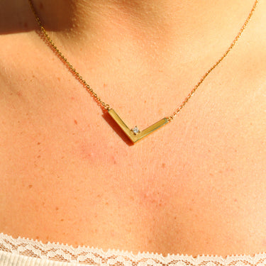 The Wholesale 18K PVD Coated Stainless Steel V-Shaped Pendant Necklace is made with a proprietary blend of 316L Surgical Steel.