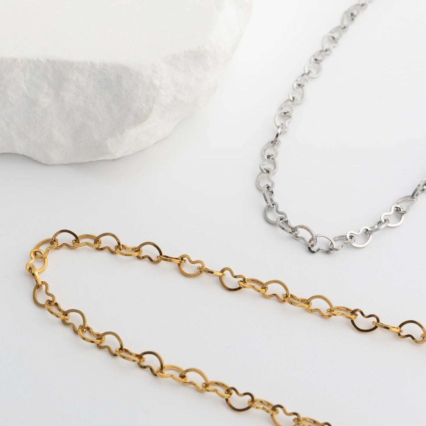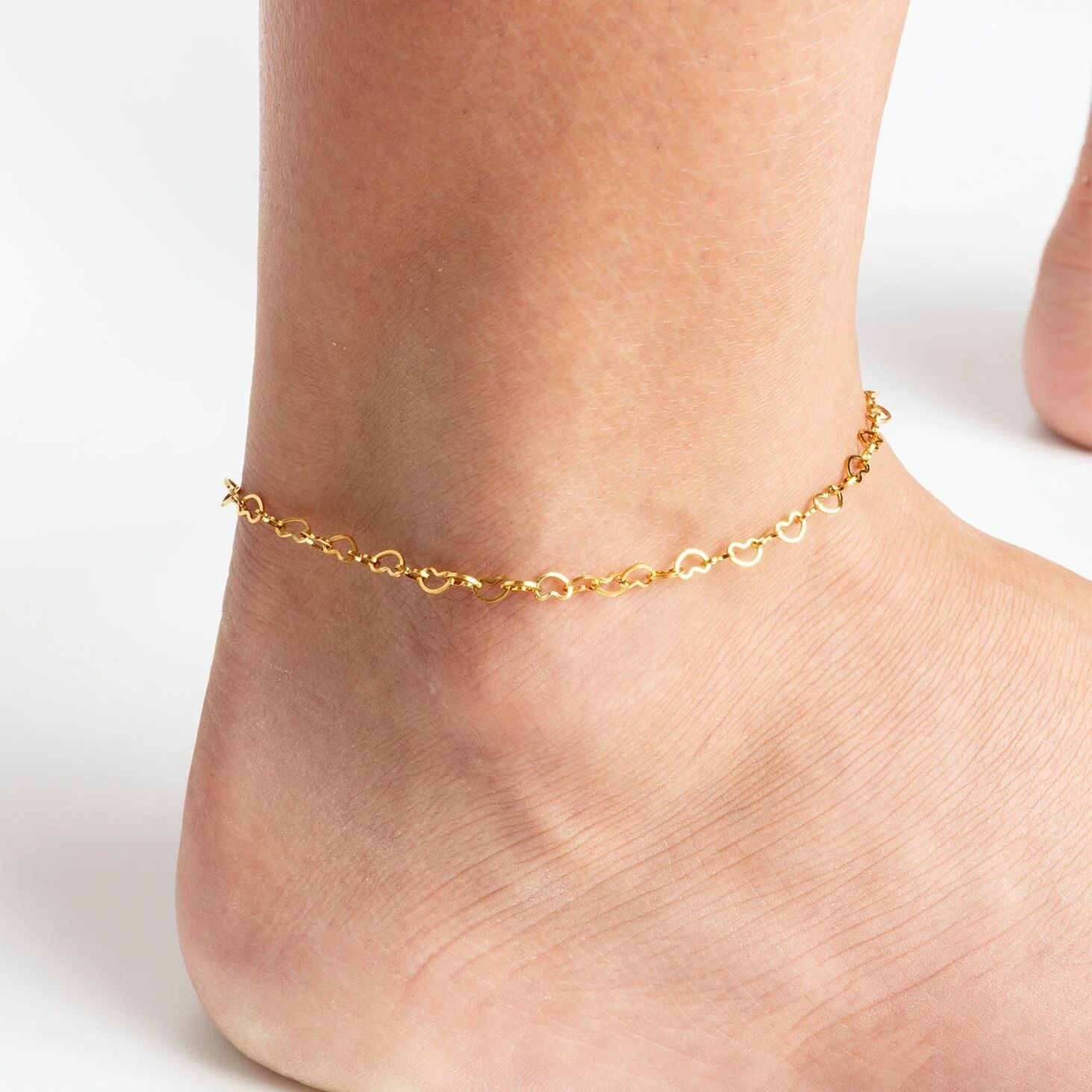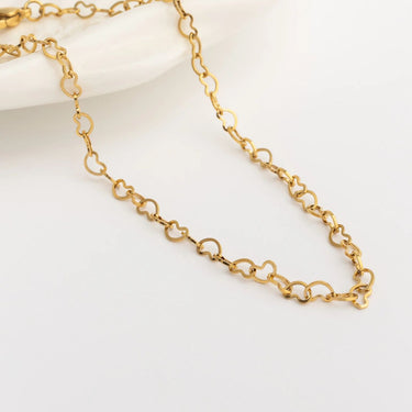 A romantic and heartfelt piece that sells itself across anniversaries, milestone celebrations, and everyday gifting occasions, the 18K Gold PVD Stainless Steel Intertwined Hearts Anklet is designed for customers who want to wear a symbol of love and connection close with every step. Crafted from premium stainless steel and finished in radiant 18K Gold PVD, this anklet delivers long-lasting, tarnish-resistant shine suited for everyday wear. Delicate intertwined heart motifs are thoughtfully arranged along the chain, symbolizing unity and affection in a way that feels both personal and universally appealing. Lightweight and versatile, this piece transitions seamlessly from casual daily wear to romantic special occasion styling, making it a staple in any curated collection.
