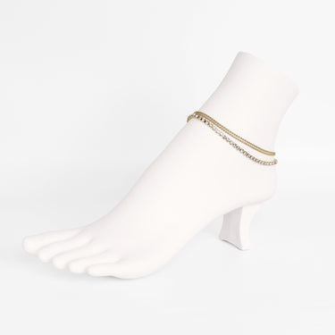 An exquisite blend of glamour and sophistication, this is the Rhinestone and Shotbead Chain Anklet. This beautiful women's layered anklet features three rows of chain styles including two rows of fine shotbeads and one row of clear rhinestones that are soldered together on a single lobster clasp. The rhinestones are securely set to ensure they stay dazzling, while the shotbead chains provide a sleek, stylish look that lasts. This is perfect for adding a touch of elegance to everyday wear or making a statement at special events!