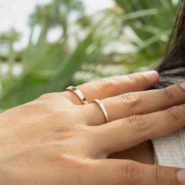 If you're looking for a unique and stylish ring that will make a statement, look no further than our Rose Gold Flat Ring! This beautiful ring is made of high-quality stainless steel and is PVD coated with 18K rose gold for a luxurious look. Its flat design provides a modern, sophisticated look, making it the perfect accessory for any occasion, whether worn solo or stacked with other pieces!