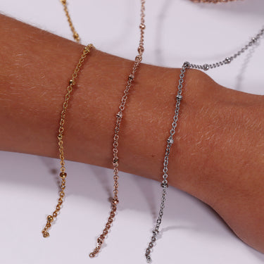 We use the process of PVD Coating our 18K Gold and 18K Rose Gold chains over 316L surgical grade stainless steel for a non-tarnish, hypoallergenic, polished finish that will hold up best to everyday wear and will never turn your customer's skin green.