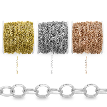 Because we make them with our 316L Surgical Stainless Steel and for the gold version PVD Coat them with our 18K Gold and Rose Gold version, you can rest assured that they will never tarnish, fade or turn your customers skin green. This is a great style of chain your customers will love! Make sure you check out our findings page for the clasps and jump rings you'll need to finish your chain.