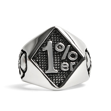 The Wholesale Stainless Steel "1%er" With Skull Accents Signet Ring is made with a proprietary blend of 316L Surgical Steel.