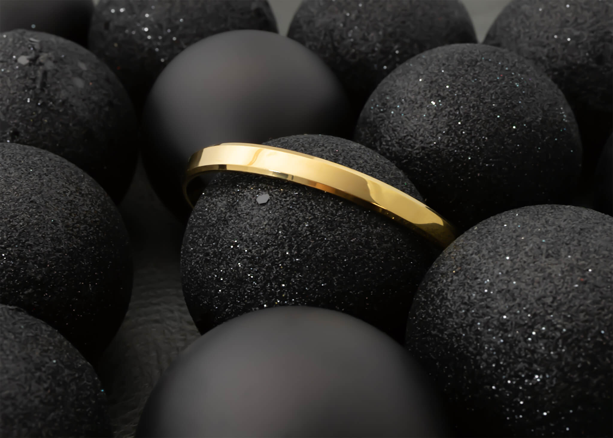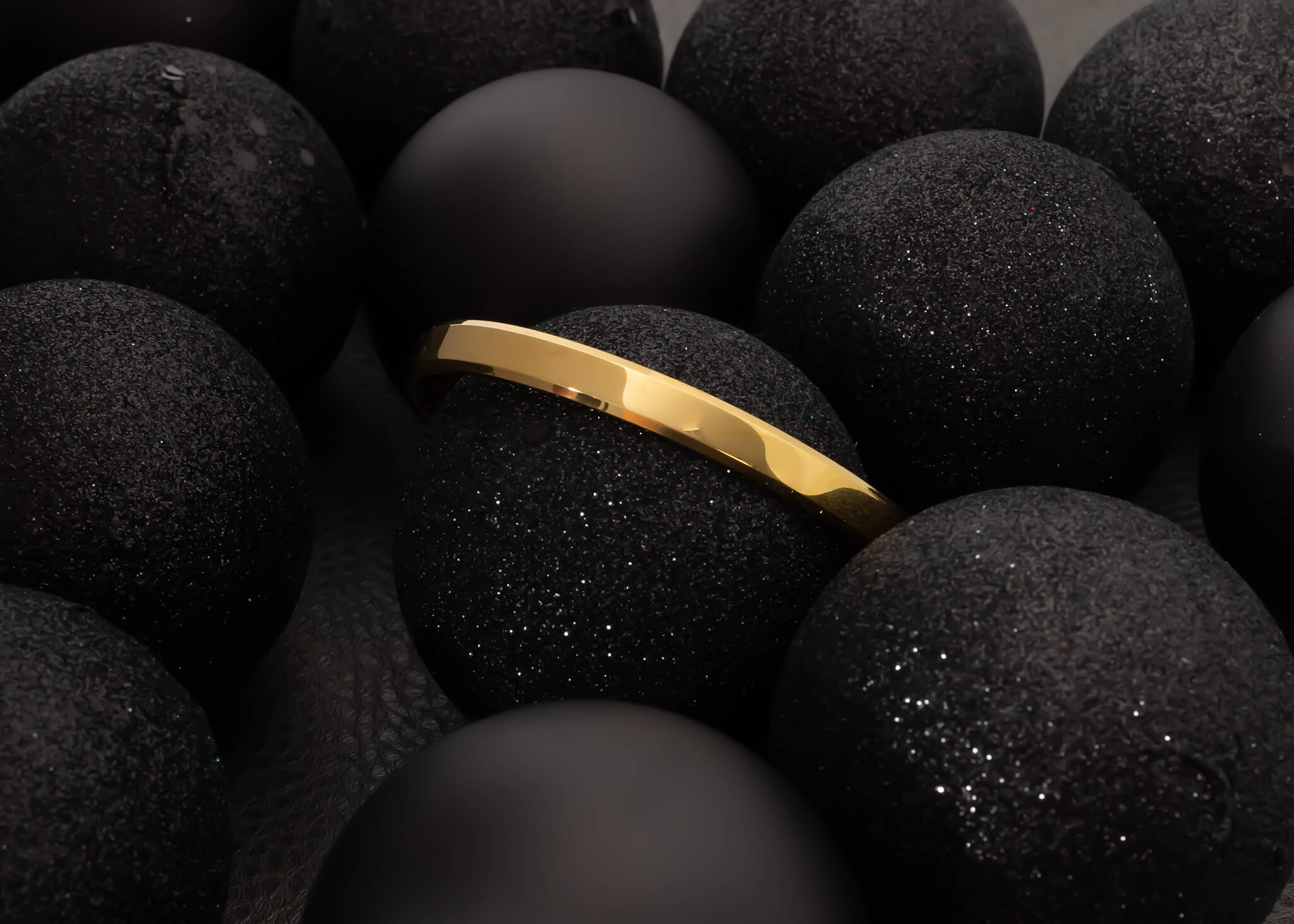 We use the process of PVD Coating our 18K Gold jewelry over 316L surgical grade stainless steel for a non-tarnish, hypoallergenic, polished finish that will hold up best to everyday wear and will never turn your customer's skin green.