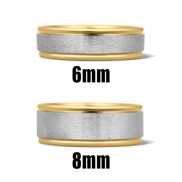 The Wholesale 18K Gold PVD Stainless Steel Brushed Center Groove Edge Ring is made with a proprietary blend of 316L Surgical Steel.