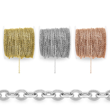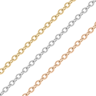 Having the ability to make your own jewelry with chains however long you need them is a great business practice. This 2 mm Oval Loop Chain is a very popular chain style that is great for making bracelets and necklaces custom to your business needs. The 2 mm Oval Loop Chain is made with surgical grade, hypoallergenic, non-tarnish stainless steel and is a great alternative to fine jewelry when creating more economical permanent jewelry. It is also great for your bottom line!