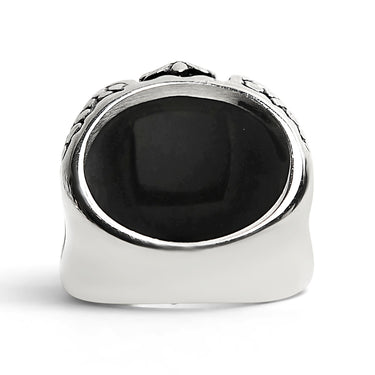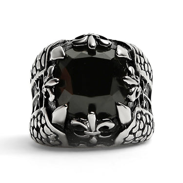 The Detailed Black CZ Fleur De Lis Stone Stainless Steel Ring is strong, durable, and doesn't easily break.