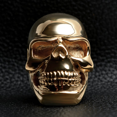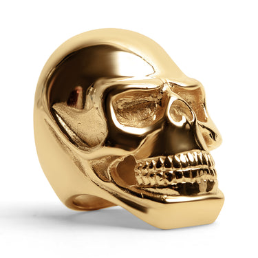 Detailed 18K Gold PVD Coated Grinning Skull Stainless Steel Rings are strong, durable, and don't easily break.