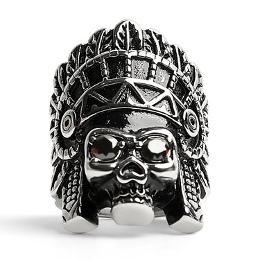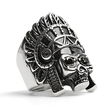 The Stainless Steel Black CZ Eyed Native American Chief Skull Ring is strong, durable, and doesn't easily break.