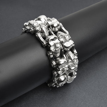 The Stainless Steel Double Skulls Alternating Bike Chain Bracelet is strong, durable, and doesn't easily bend.