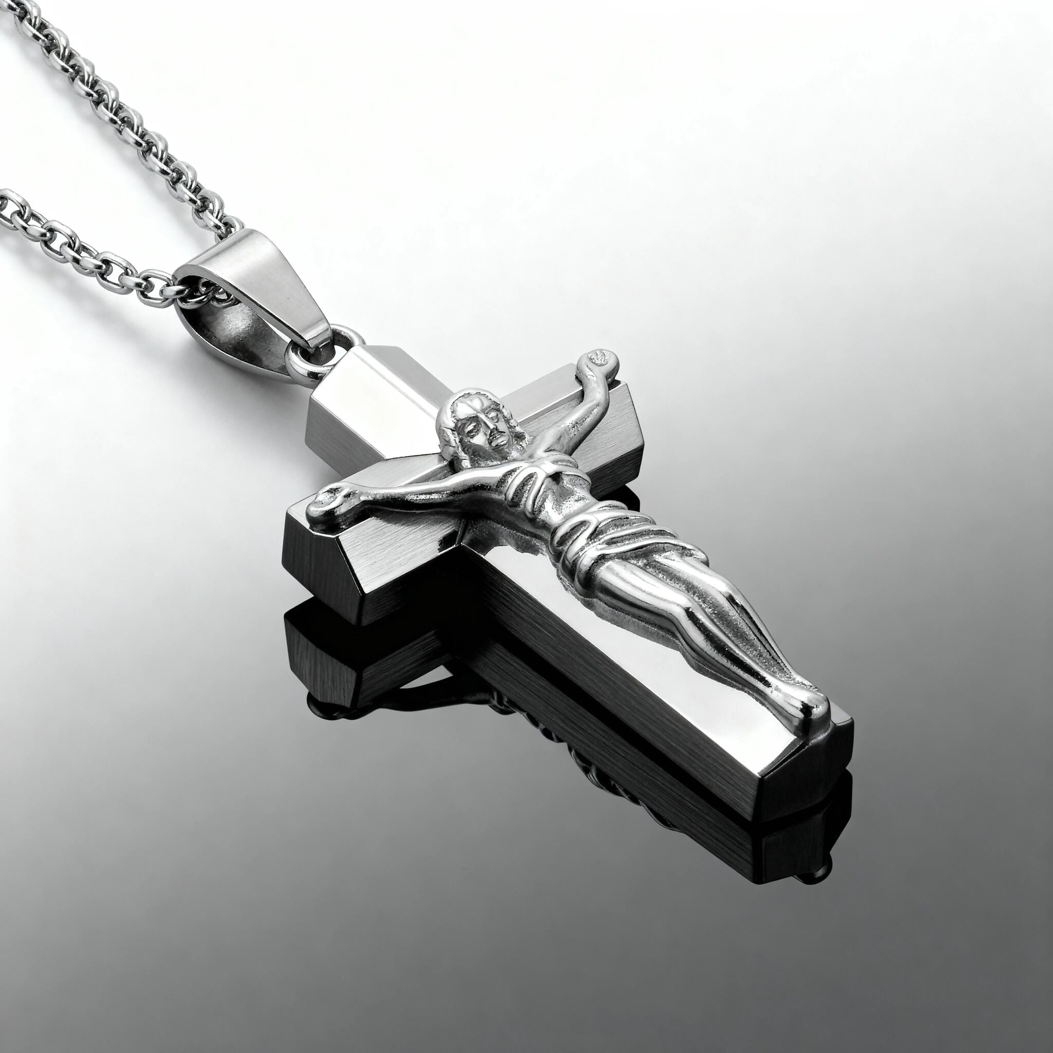 The Stainless Steel Crucifix Cross Pendant is strong, durable, and doesn't easily bend.