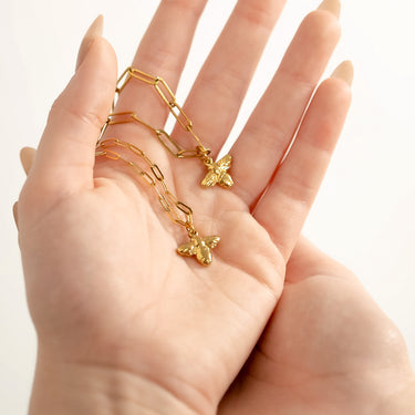 The busy bee is a symbol of dedication, hard work, teamwork, prosperity and fertility. Held dear by several cultures and regions it is easy to see why the bee has seen an increased demand at retail over recent years. Help your customers customize the perfect sentimental charm bracelet or necklace with our bee charm. The Bee Charm makes the perfect addition to your chain necklaces and bracelets all season long! Made with our proprietary blend of surgical-grade 18K Gold PVD coated stainless steel designed for everyday wear, your customers have quality, style, and comfort to cherish for years to come!