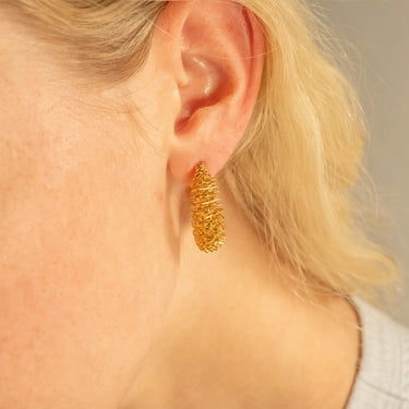 Our Wired Statement Hoop Earrings are bursting with texture and are great as a stand alone seller, but are the perfect option to be paired with other huggies or stud earrings for a stacked look. Explore our complete Earring Collection to start building your own assortment of stacked earring looks!