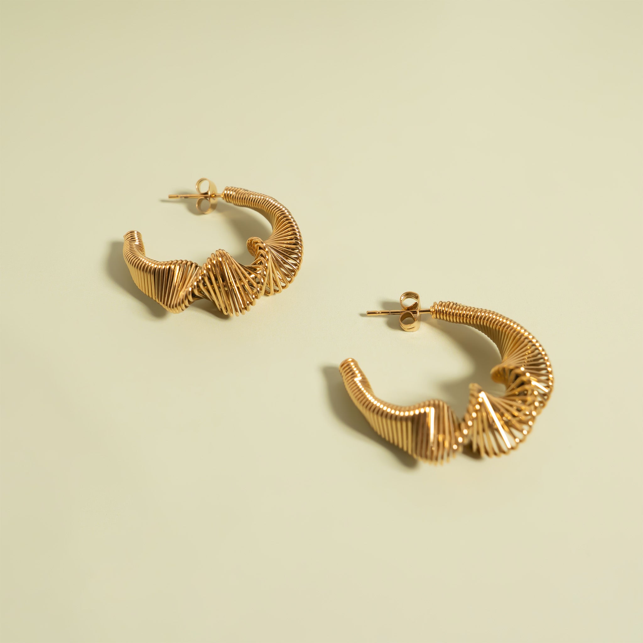 Our Wired Statement Hoop Earrings are bursting with texture and are great as a stand alone seller, but are the perfect option to be paired with other huggies or stud earrings for a stacked look. Explore our complete Earring Collection to start building your own assortment of stacked earring looks!