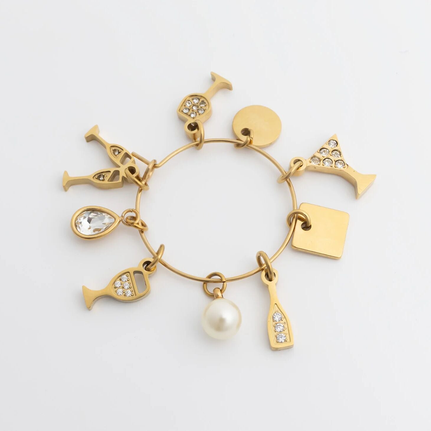 18K Gold PVD Stainless Steel Wine Charm Set / BND0089