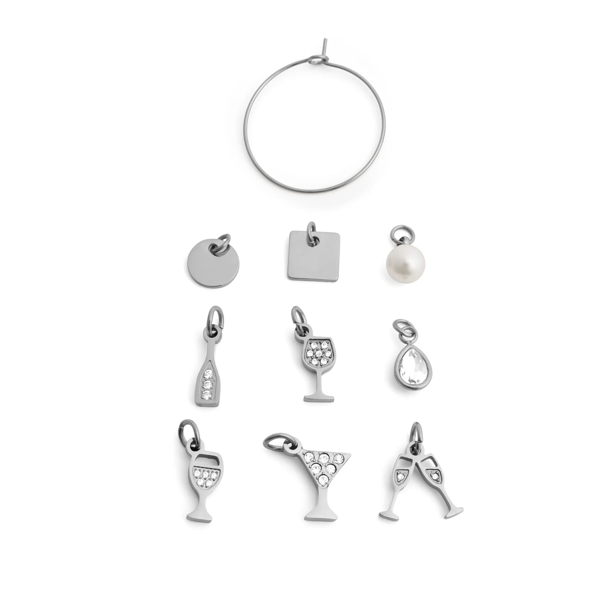 • Coordinated wine charm assortment for stylish and functional glass identification