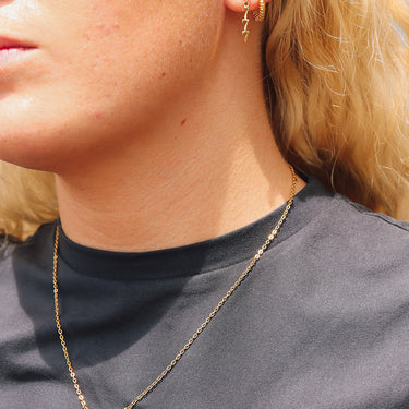 We use the process of PVD Coating our 18K Gold jewelry over 316L surgical grade stainless steel for a non-tarnish, hypoallergenic, polished finish that will hold up best to everyday wear and will never turn your customer's skin green.