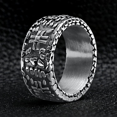 The Detailed Cross In Stone Wall Stainless Steel Ring is strong, durable, and doesn't easily break.