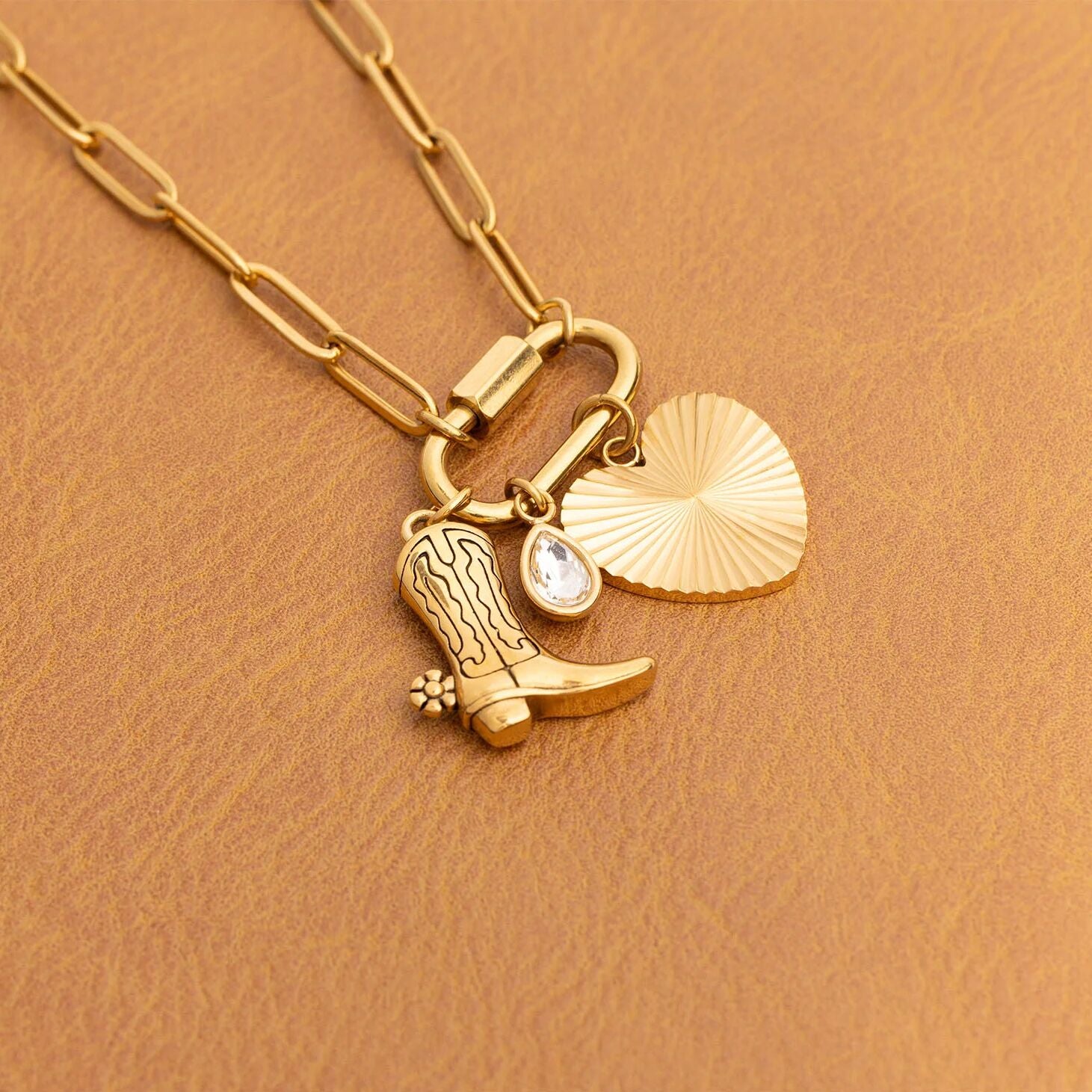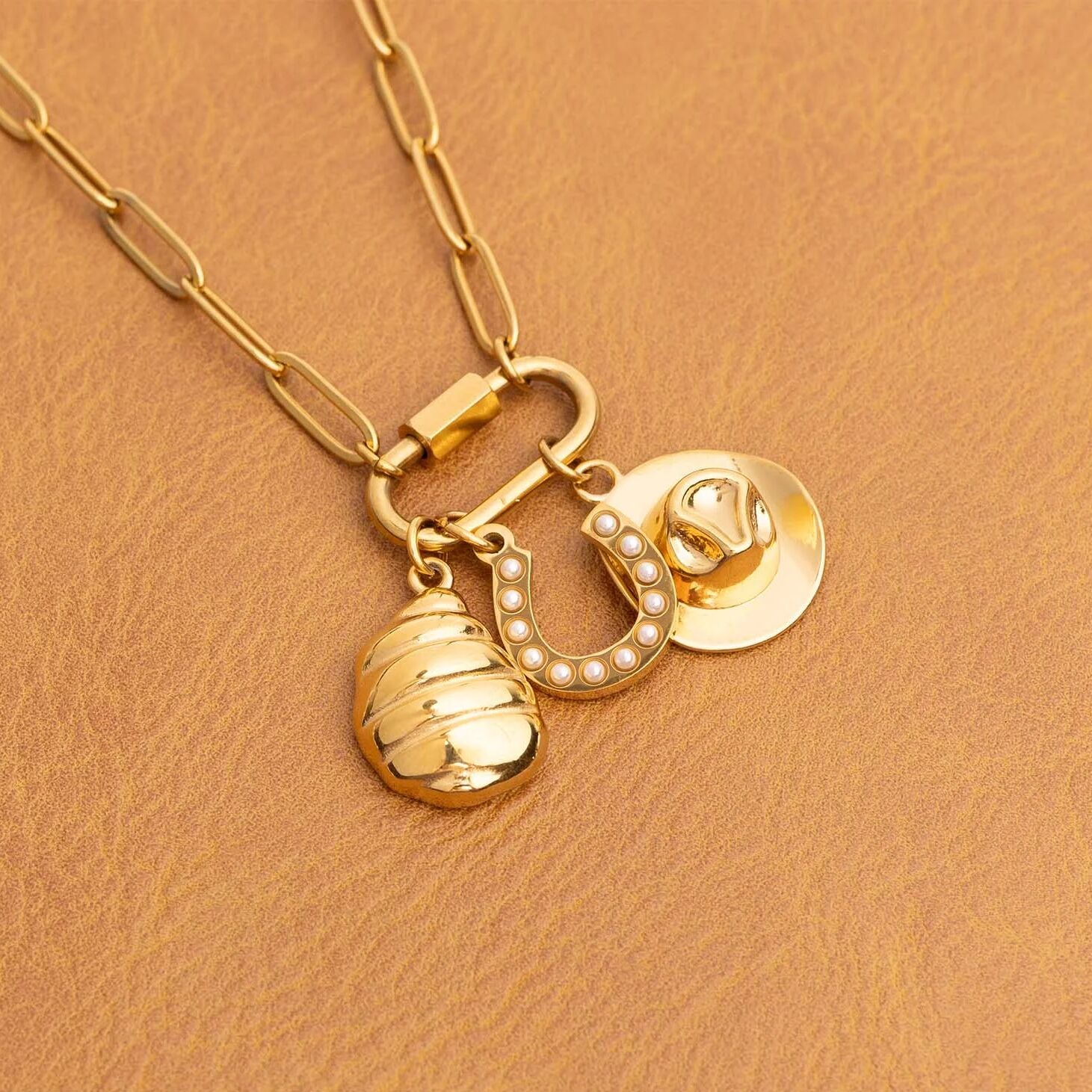 Where western edge meets seaside ease, the 18K Gold PVD Stainless Steel Coastal Cowboy Charm Set captures trend-driven styling with refined polish. Crafted from premium stainless steel and finished in radiant 18K Gold PVD, each charm delivers long-lasting, tarnish-resistant shine designed for everyday wear. Featuring a curated mix of seashell, starfish, and cactus motifs, this set blends rugged western spirit with coastal elegance—tapping into one of fashion’s most sought-after aesthetics. Lightweight, expressive, and easy to layer, these charms create versatile looks that transition effortlessly from beach days to city nights.