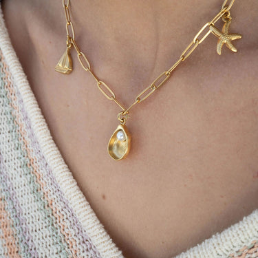18K Gold PVD Stainless Steel Shell Charm with Pearl / PDL0191