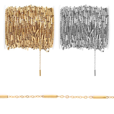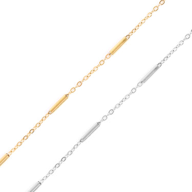 The Satellite Bar Chain is a new classic to the world of jewelry makers and permanent jewelry artists for a reason. Its link and bar chain design creates an effortless glow that shines perfectly with the light. Your customers will love to see this staple on display in your store! This is a great style of chain for permanent jewelry and custom jewelry designs. Make sure you check out our findings page for the clasps and jump rings you'll need to finish your chain.