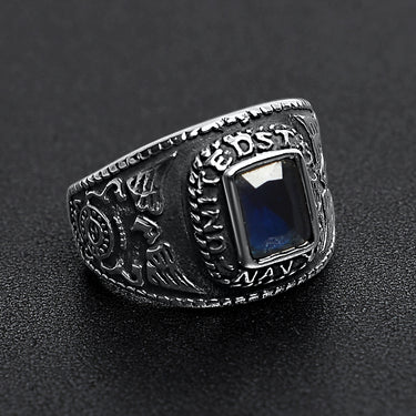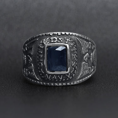 미국 해군 다크 블루 센터 스톤 스테인리스 스틸 여성용 반지는 튼튼하고 내구성이 뛰어나며 쉽게 깨지지 않습니다.