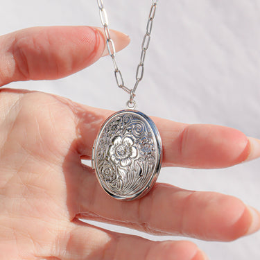 이 우아한 텍스처드 오벌 로켓은 시대를 초월하는 아름다움과 현대적인 내구성을 겸비했습니다. 아름다운 꽃무늬 텍스처가 특징인 이 로켓은 어떤 주얼리 컬렉션에도 섬세하고 빈티지한 매력을 더합니다. 고품질 스테인리스 스틸로 제작되고 고급스러운 18K 골드 PVD 마감으로 마감된 이 제품은 세련미와 오래도록 지속되는 착용감을 선사합니다. 열리도록 디자인된 이 로켓에는 소중한 사진이나 기념품을 가까이에 보관할 수 있는 숨겨진 보관 공간이 있습니다.