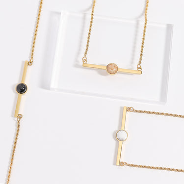 Give your necklace collection the perfect touch of natural beauty with the Semi Precious Natural Stone Bar Necklace!