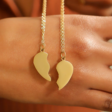 Celebrate love and connection with this Break Apart Engravable Heart Necklace Set! This unique set includes two complementary heart shaped pendants that can be separated, making it the perfect gift for couples, best friends, or family members. Each pendant offers a smooth, flat surface perfect for engraving names or dates. Crafted from a durable stainless steel and finished with a luxurious 18K gold PVD, this necklace is both elegant and built to last!