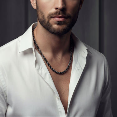 The Black Stainless Steel Rope Chain Necklace is strong, durable, and doesn't easily break.