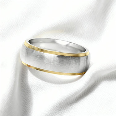 18K Gold PVD Stainless Steel Gold Edge Brushed Blank Ring / CFR0003