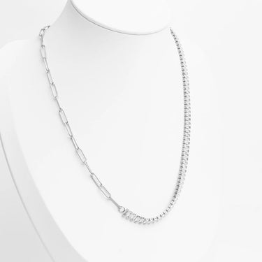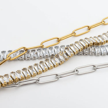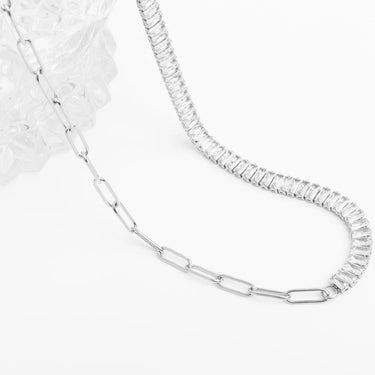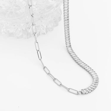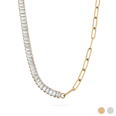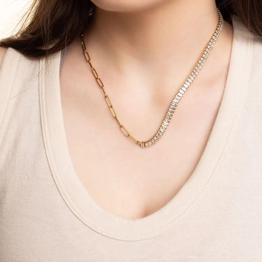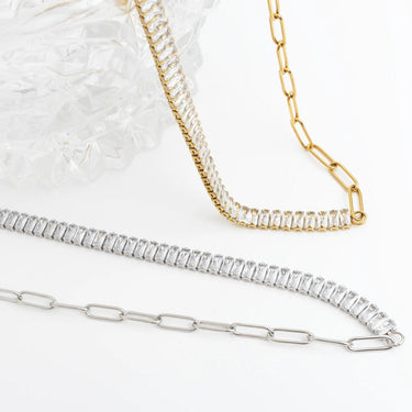 18K Gold PVD Stainless Steel Paperclip Emerald CZ Tennis Chain Split Necklace / CHN0164