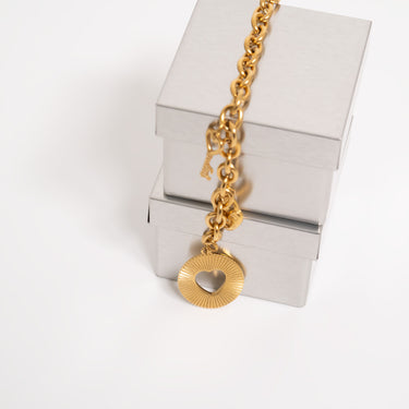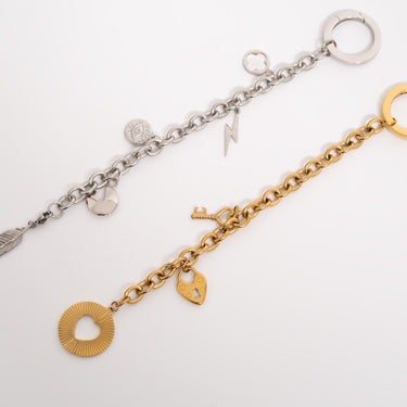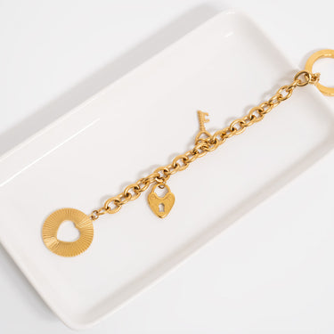 Elevate your everyday essentials with this stylish charm key chain. Crafted from durable stainless steel and finished in radiant 18K gold PVD, it features a sleek round clasp that makes attaching charms effortless. Perfect for keys, bags, or as a statement accessory on the go, this key chain brings both function and flair.